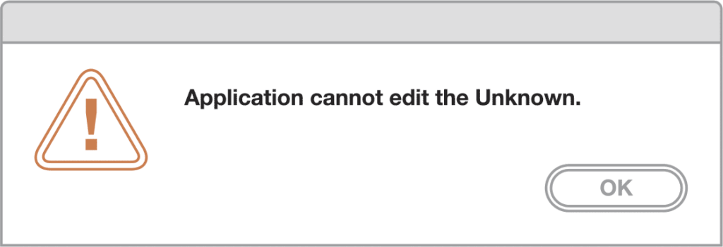 Isn’t it pleasing to think that software has pathos, and that writing is just as difficult for it as it is for us? I admit, most error messages create a large amount of grief because they signify lost work, but when this particular one popped up, I had to laugh. “Application cannot edit the Unknown” (capitalized, proper noun), and all I could do is to accept it and say OK. The computer had been personified for a moment, and in its existential crisis, I felt like it understood my writer’s block. It was comforting to have company when lost in my words. This happy circumstance means that one of the best opportunities to delight the audience is when something goes wrong.